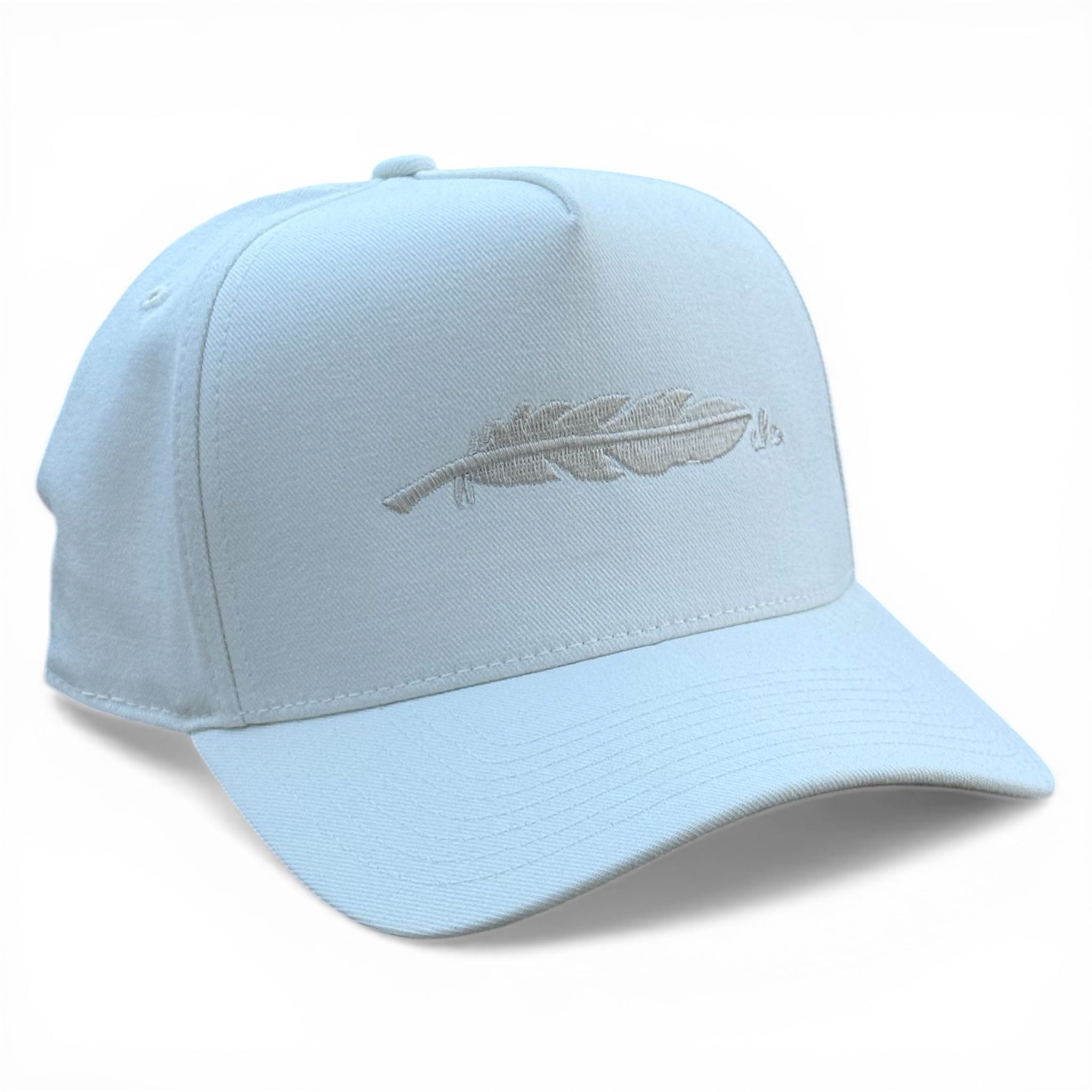 Solid vintage white with a tonal embroidered AHC feather — clean, simple, goes with everything. The Bone is a structured cotton snapback built for big heads — fits up to a size 8 with a broken-in feel from day one.